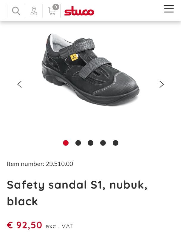 Stuco (43р. / 28 см). Сандалії міцні та не вбиті — є стандартні косметичні сліди експлуатації. Зношування підошви в зоні п'яти ні на що не впливає, оскільки там грубий шар гуми. Реально дуже зручне та комфортне взуття, яке стирає своїх грошей (ціна нових 93я). Устілка з невеликим заокругленням на п'яті, довжина від краю до краю 28 см, ширина 9,7 см. На стопі 27 см середньої повноти сидять із зазором не менш ніж 1 см. Підійдуть на стопу з високим підйомом. Спортивні сандалі з нубукової шкіри. Із широким ергономічним сталевим носком і подвійною застібкою-липучкою. М'яка шкіряна підкладка та зручна устілка забезпечують оптимальний комфорт. Підошва з поліуретану з амортизатором Stuco Soft-Pad. Підошва стійка до впливу олив і палива, антистатична. Випробувана та сертифікована відповідно до EN ISO 20345 S1 SRC, ESD.