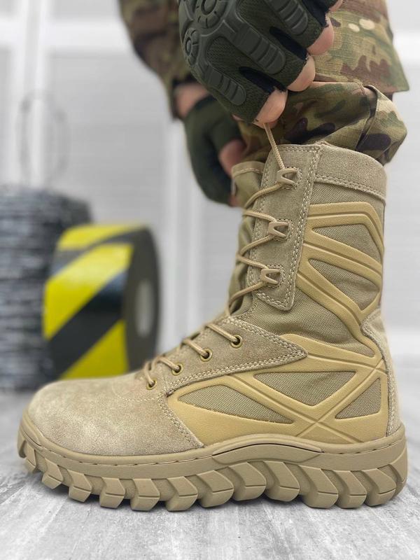 Нові чоловічі польові черевики Annobon Boot побудовані на принципах легкості, міцності та комфорту. У взутті поєднувалися міцні натуральні матеріали з високоефективними синтетичним нейлоном та поліуретаном. Скелеподібний верх черевик виготовлений із застосуванням шкіри, у місця підвищеного зносу, та сітчастого нейлону, для забезпечення максимальної повітропроникності. Легкий гумовий "екзоскелет" нанесений поверх нейлону, додає міцності черевика, а також підсилює підтримку ноги. 43-27.5 43-27.5 -28 - 44-28.5 - 45-29 - 46-29.5