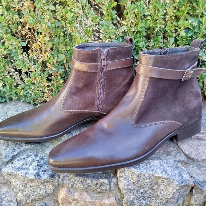 чоловічі чоботи, шкіряні, коричневі на блискавці. демі.нові.вустілка 29 см на вузьку ногу. Враховуйте що носок вузький, тому довжина ноги має бути меншою.
