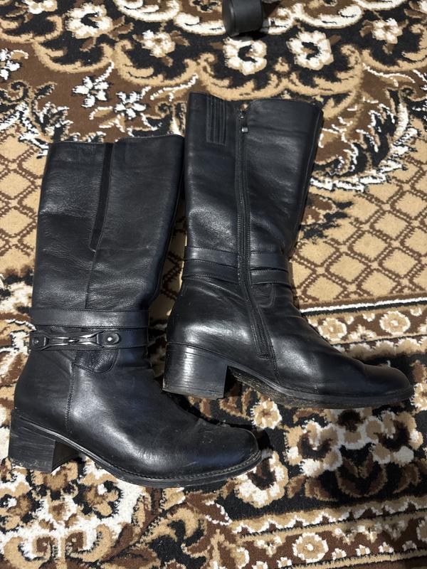 Гарні, невисокі, чорні, шкіряні чоботи жіночі.