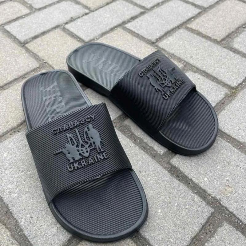 Нові тапочки шльопанці чоловічі з логотипом Слава ЗСУ Чудовий подарунок справжнім українцям патріотам, тим більше що виготовлено в Україні. Стильно виглядають на нозі, зручна щільна підошва, при цьому сланці легкі за рахунок якісного матеріалу ева. Цільнолітьєві, не бояться води Зроблені в Україні. заміри від краю до краю: 39/40- 26см 41/42 - 26.5-27 42/43- 27-27,5см 43/44- 28-28,5см 44/45 - 28.5-29 см 45/46 - 29.5-30см