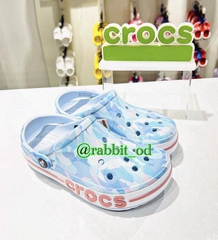 Крокс баябенд клог голубі з принтом crocs bayaband bubble camo clog mineral blue