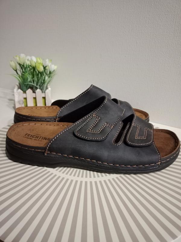 Зручні легкі комфортні шлепаньці.(дві липучки для зручності) верх-єко шкіра устілка-замша гнучка-підошва колір-чорні в наявності-41-26.5см 42-27см 43-27.5смпродані 44-28смпродані 45-28.5смпродані