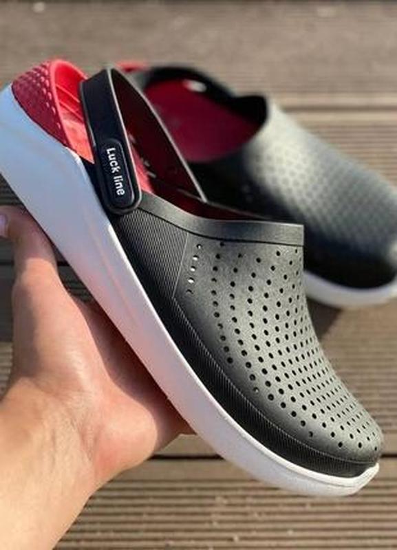 Сабо крокси шльопанці чоловічі силікон Luck Line Матеріал силікон Самі зручні які по кроксам бачила Є дешевші моделі ,але ці найкращі 40р -26,5 см 41р - 27 см 42р - 28 см 43р - 28,5 см 44р - 29 см 45р – 30 см М'які,стильні,комфортні. Підошва – гума, верх – м'який силікон. Товщина підошви 3 див. Устілка ортопед Легко мити, для пляжу, бані, біля дому