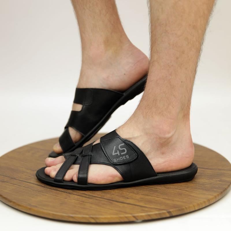 Шлепанцы мужские черные кожаные (шлепки,сланцы из натуральной кожи черного цвета) - мужска...