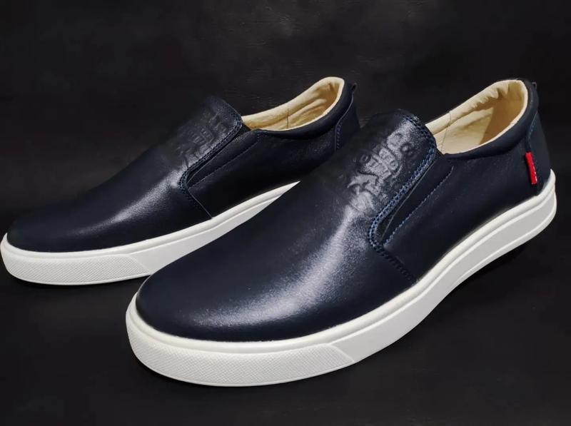 Чоловічі сліпони з натуральної шкіри, всередині устілка і підкладка шкіряні,колір синій.Розміри в наявності 43,41,40