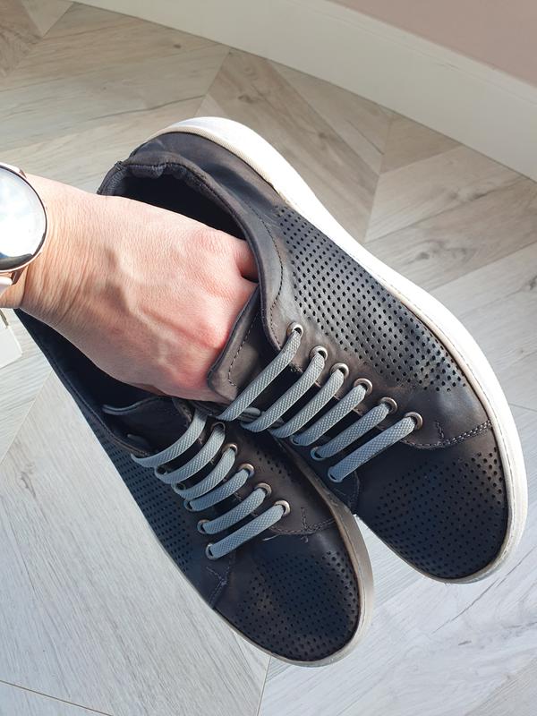 Дуже зручне шкіряне перфороване взуття, нога вентелюється, шнурки резинові тягнуться, р40-41: довжина по підошві 30см, устілка 27см, ширина 9с. підошва жовтувата, корегується білою пастою стан хороший. підійде як на суху весну-осінь, так на літо. Виробник турція Hamma.