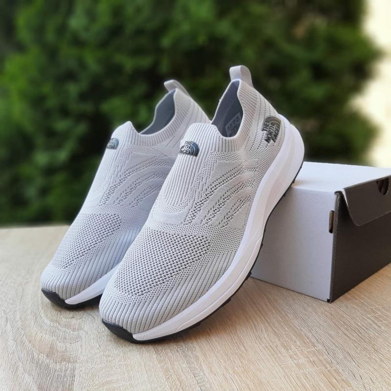 Чоловічі якісні сліпони тапкі мокасіни the north face світло сірі