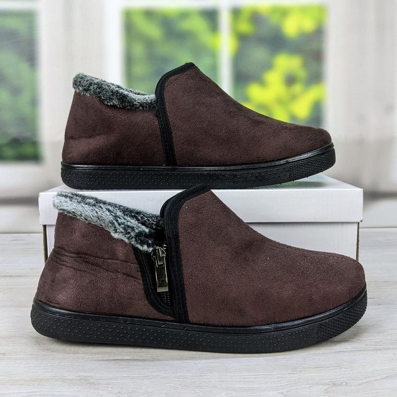 Капці панчіх чоловічі теплі з задником на хутрі коричневі progress 3631