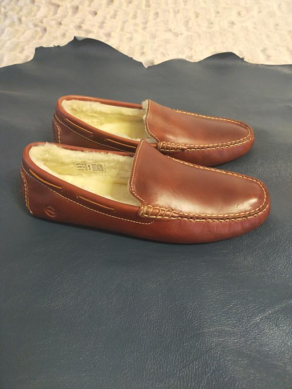 Чоловічі шкіряні тапочки -мокасини ,, Mohawk, Orca Bay, виготовлені вручну з м'якої високоякісної шкіри, стан нових, в середині з плюшевого флісу, підошва шкіряна з резиновими бугорками( не слизька) легенькі та комфортні, на нозі майже невагомі. Розмір 45 довжина устілки 29 см призначені для носіння в будинку, та приміщеннях з холодною підлогою.