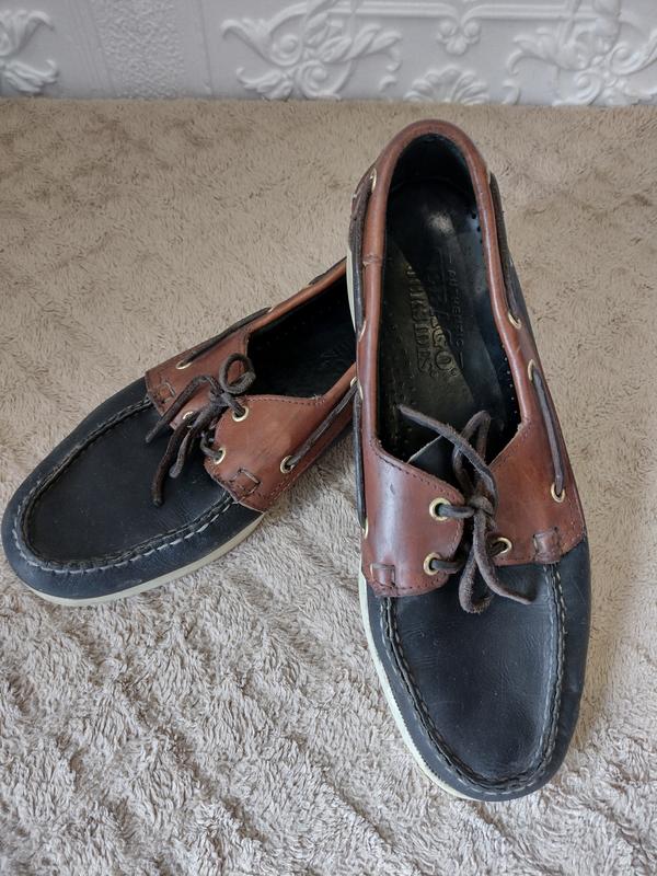 Трендові топсайдери мокасини від всесвітньо відомого американського бренду Sebago. Размер указан 10 W,что по размерной сетке соответствует евро 44,наш 43, в см 28 ( смотрите фото с сантиметром). Б/У, хорошее. Made in the Dominican Republic. Цвет черный с коричневым.