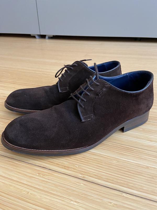 Гарні туфлі, верх замш, всередині шкіра і тканина, є дефект , показала на останньому фото.Довжина устілки 29,5 см