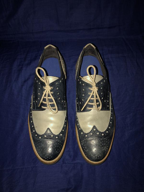Кожаные туфли броги. Верх и внутри натуральная кожа. Внутри стоит мягкая по типу кроссовочной стельки, но стелька не съемная. Подошва легкая и мягкая. Туфли легкие. Размер указан 42. Длина внутри по стельке 28 см. Состояние отличное.