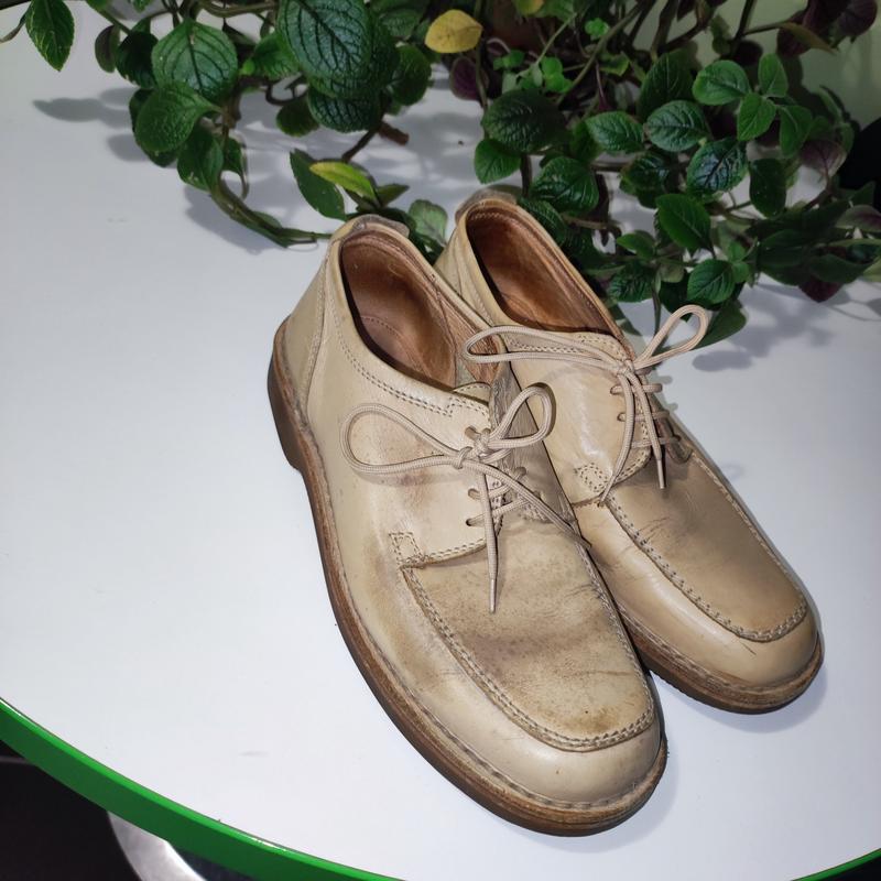 Предлагаю вашему вниманию мужские кожаные туфли Размер 41 Состояние удовлетворительное, недостатки на фото Ткань кожа Цвет беж длина стельки 26 см высота каблука сзади 2.5 см высота подошвы спереди 1 см