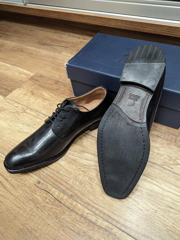 Класичні чоловічі оксфорди американського бренду Joseph Abboud. Елегантні, виготовлені з високоякісної натуральної шкіри, мають простий дизайн з заокругленим носком і зручною шнурівкою. Розмір 43, довжина по устілці 29 см