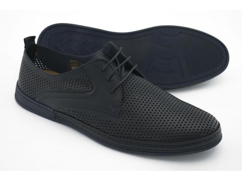 Оригинальные мужские летние классические туфли. Обувь выполнена из натуральной гладкой кожи со сквозной перфорацией, на шнуровке и лёгкой резиновой подошве. Украина, кожа, черный, лето