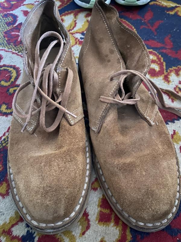 Замшеві дезерти 27 см по устілці Зовні ідеальний стан ніде не затерті, потрібно тільки устілки нові всередині без дірок усе добре