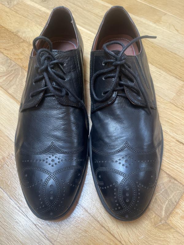 Туфлі повністю шкіряні як верх так і внутрішня частина ,на завязку , шкіра дуже мягка , класно виглядають , один раз взутті , просто нога виросла у сина швидко , тому не зношені . На носику візерунок , що стилізує підходять як до класичних штанів так і до джинсів.