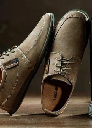Туфлі чоловічі TTaccardi by Kari Туфлі чоловічі — якісна та практична модель. Матеріал верху — екошкіра — еконубук. Туфлі легкі та м'які. На нозі мають акуратний та елегантний вигляд. Чудової якості, зручні та добре носяться. 40 - 26,5 см 41 - 27 см немає 42 - 28 см на 43 43 - 28,5.см на 44 немає 44 - 29 см немає 45 - 30 см немає