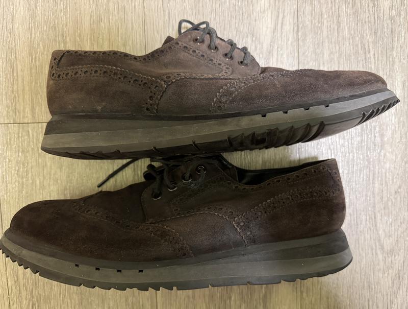 Мужские броги Prada. Цвет коричневый. Размер 42. (8). Состояние хорошее. Есть порыв, виден на последних двух фото.