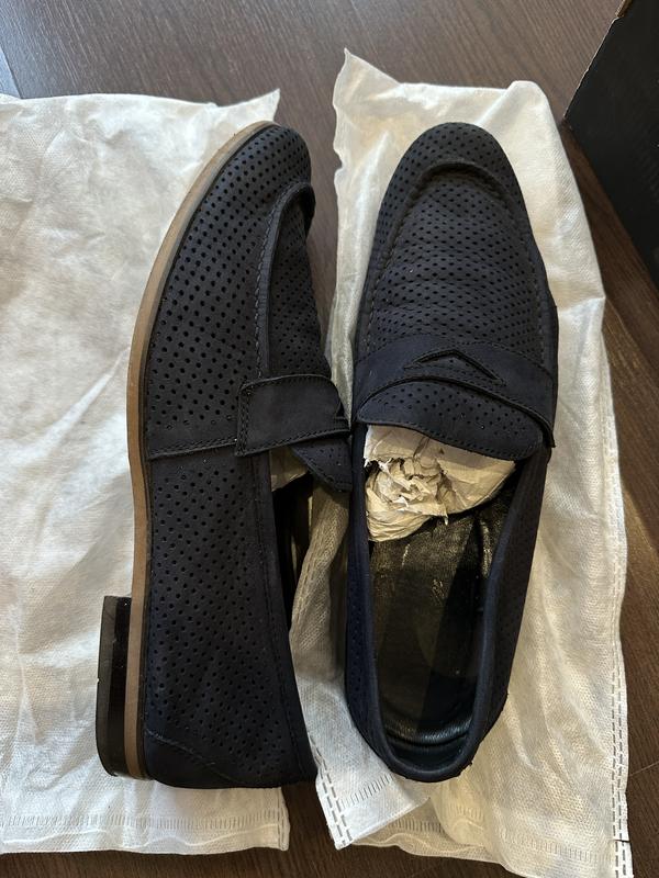 Мужские темно-синие лоферы 41 размера. Натуральная кожа. Купили в магазине Arber. Стан хороший. Имеется фирменная коробка (противляли от пыли и немного изменился цвет коробки)