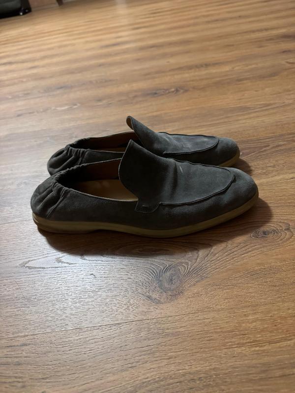 Ці елегантні туфлі виконані з м’якої замші темно-сірого відтінку, що надає їм витонченого та стильного вигляду. Модель має мінімалістичний дизайн з вишуканими лініями та злегка округлим носком. Резинка на задній частині забезпечує комфортну посадку та легкість при надяганні. Легка підошва з міцного матеріалу робить взуття зручним для щоденного носіння. Ідеальний вибір для тих, хто цінує поєднання комфорту та класичної естетики.