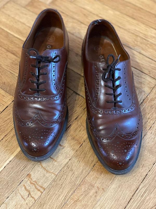 Продам туфлі броги. Розмір на устилку приблизно 27,3 см, тобто 42 наш. Стан по фото. Є незначні нюанси, їх показав. Подряпина просто маскується кремом для взуття( її після нанесення майже не видно)