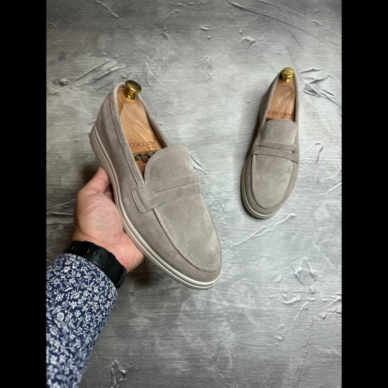 Мужские лоферы натуральная замша цвета визон, туфли мужские замшевые 8220