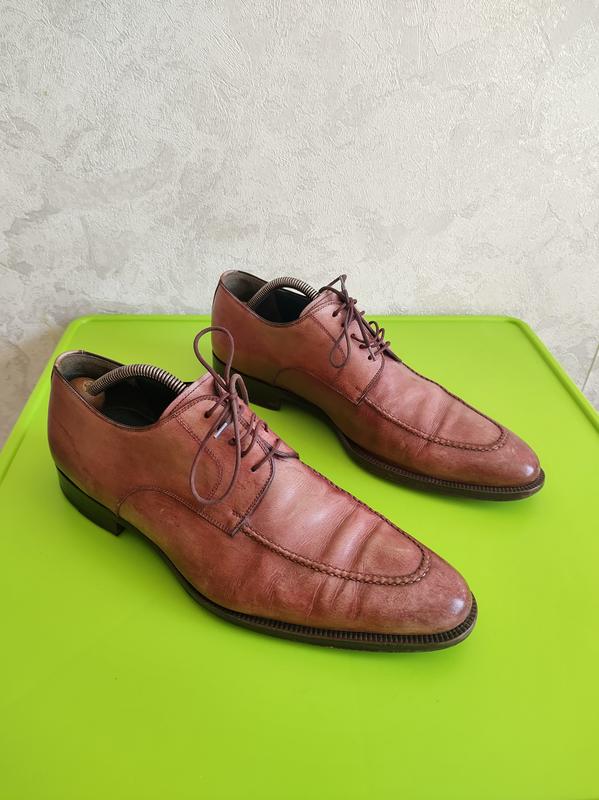 Туфлі виготовлені в Іспанії Такі (дуже схожі) на eBay коштують 50-60 доларів Бренд Magnanni for Neiman Marcus Натуральна шкіра Розмір 45 (11) Довжина устілки 30 см Колір більше до лососевого. шкіра під зістарену зроблена Ефектні і не такі як у всіх Потребують заміни набійок, якщо вам принципово, стан підошви дивіться на фото 57 к