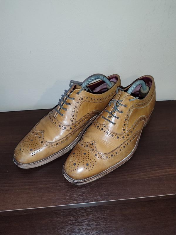 Продається стильне чоловіче взуття класичного дизайну броги світло-коричневого (коньячного) кольору. Виготовлені з натуральної шкіри високої якості, яка забезпечує довговічність і комфорт під час носіння. Елегантний перфорований візерунок додає взуттю вишуканості, роблячи його ідеальним вибором як для ділових зустрічей, так і для повсякденного використання.... Особливості: Матеріал: 100% натуральна шкіра Колір: світло-коричневий (коньячний) Підошва: шкіряна з міцним прошиттям Розмір: 40-41 Стан: б/у Ці туфлі стануть чудовим доповненням до вашого гардеробу, підкресливши ваш смак і статус. Гарних покупок.Мирного неба.