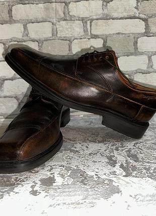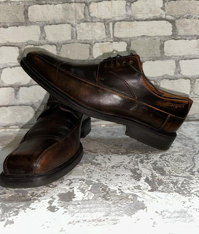 чоловічі туфлі Bugatti Стан дуже хороший. Хороша , добротна шкіра , Підошва не стерта , каблуки Не підтерті Розмір 43 Устілка 28,5см Колір темно коричневий з світло коричневим потертостями.