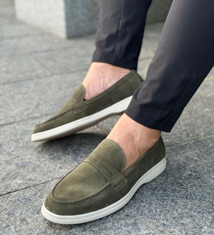 Лофери туфлі чоловічі оливкові з натуральної замші, замшеві 8220