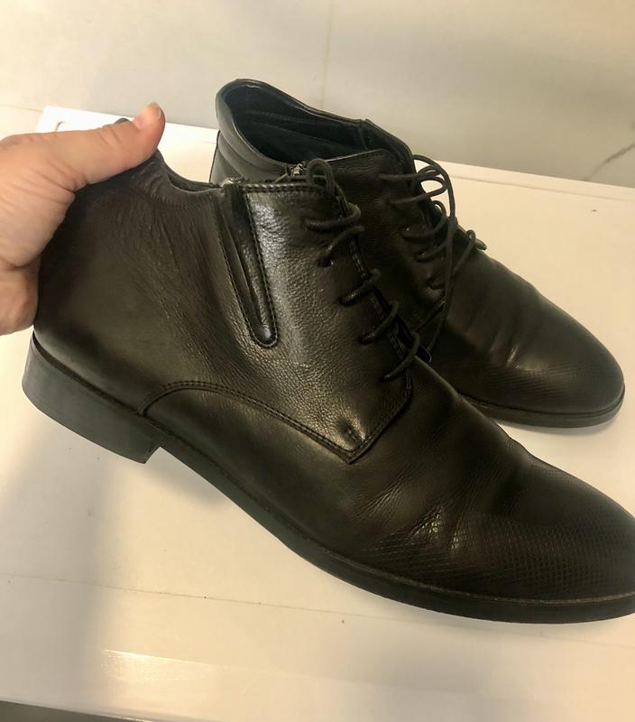 Чоловічі шкіряні черевики розмір 43, чорного кольору. Стан відмінний. Vito Rossi. Утеплені. Дуже мʼяка шкіра. Носилися в машину та офіс 1 сезон.