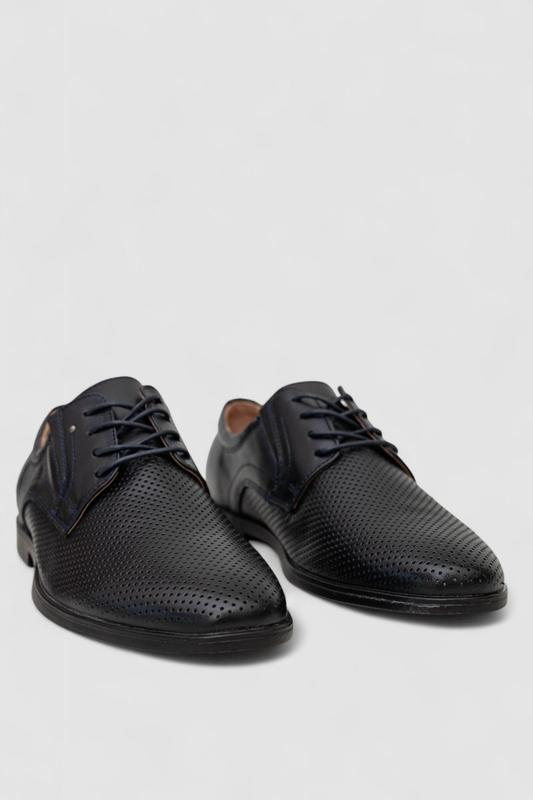 Чоловічі шкіряні туфлі від українського бренду, виробник Китай. Змішані матеріали. Колір темно-синій, але на фото виглядають як чорні :) Перед замовленням будь-ласка уточніть наявність розміру. При оплаті замовлення до 15:00 висилка того ж дня Довжина по устілці 40р - 27 см 41р - 27,5 см 42р - 28 см 43р - 28,5 см 44р - 29 см 45р - 29,5 см Повернення та обмін коштом покупця 853