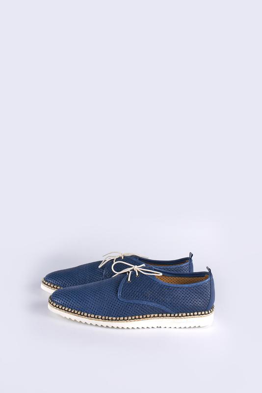 Туфлі giampieronicola сині чоловічі з перфорацією на бежевій підошві 31206