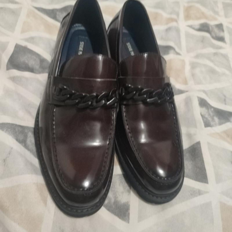 Бренд: Steve Madden Тип обуви: мужские лоферы. Дизайн: Обувь имеет глянцевую поверхность и украшена декоративной цепью на передней части. Цвет: Темно-бордовый или темно-коричневый. Подошва: Массивная, рельефная подошва. Дополнительные фото и замеры дам стелька 28.5 см