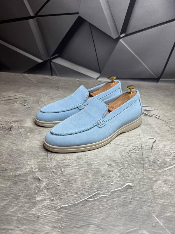 Чоловічі лофери натуральна замша блакитні, туфлі чоловічі замшеві 2510