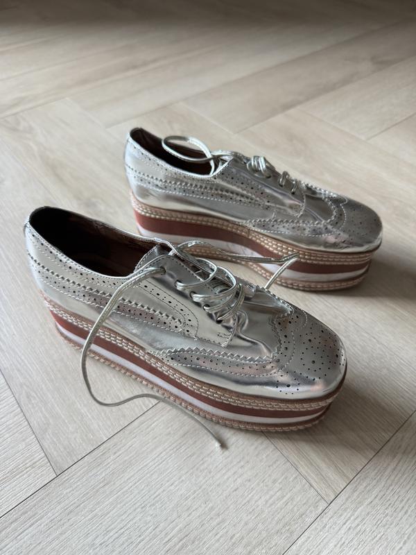 дербі серебристі з перфорацією на платформі у стилі Stella McCartney