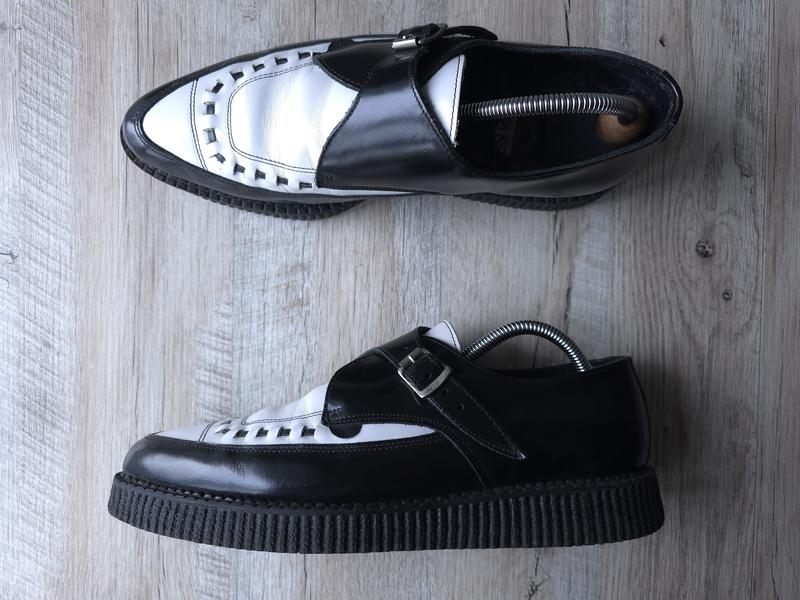 Шкіряні туфлі / кріпери Underground Apollo Monk Creeper Made in England Взуття виглядає дуже ефектно. Стан добрий, сліди використання косметичні. Розмір вказано 11 Взуття підійде приблизно на стопу 28.5 см., можливо на 29 см. Повна довжина устілки, враховуючи подовжений носок - 30 см