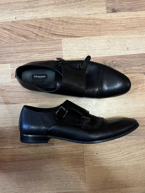 Чоловічі туфлі Dune London "REX" (Double Monk Strap) Бренд/Модель: Dune London REX (MS2108-02). Тип: Класичні туфлі "Подвійні монки" (з двома пряжками). Колір: Чорний. Розмір: 44. Особливості: Натуральна шкіра, ручна робота ("Handcrafted"), елегантний мис. Стан: Вживані, у хорошому стані. Підошва шкіряна з гумовими вставками, має природні сліди носіння. Ідеальний вибір для ділового стилю або урочистих подій.