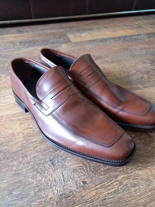 Шкіряні чоловічі пенні-лофери від португальського бренду Toscanini. Нюанс на останньому фото - плямка. Нові. Розмір 44. Довжина устілки - 30,5см, каблук - 3см.