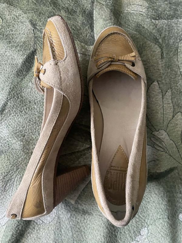 Туфлі Vero Cuoio з натуральної замші зі вставками лакованої шкіри. Каблук 7см. Колір замші ніжно-бежевий, тепліший ніж на фото. Зручні, якісні. Устілка 24 см на вузьку ніжку