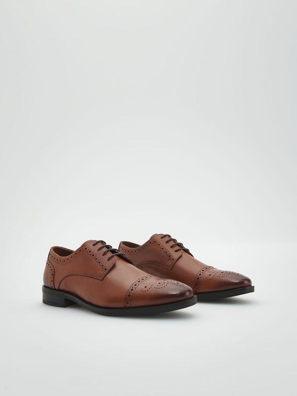 Туфлі Reserved шкіряні, чоловічі. Шикарна, класична модель. Колір коричневий. Розмір 42 по устілці 27см (зазвичай цей бренд взуття маломірять, тому краще буде сидіти на розмір ноги 41 тобто мати запас по устілці і також враховувати ширину стопи).
