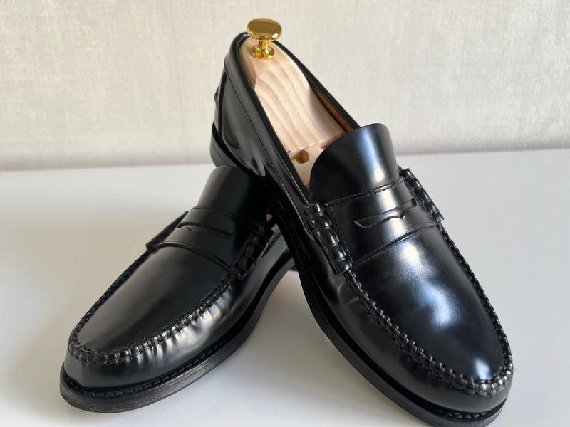 Чоловічі шкіряні лофери чорного кольору. Шкіряна підошва, однак встановлена профілактика. Розмір 39 (на стопу ~25 см). Стан ідеальний.