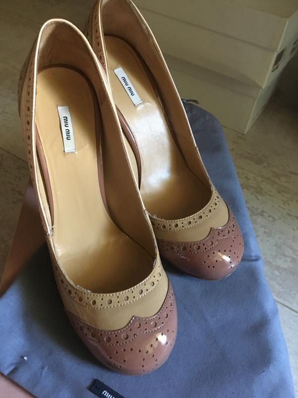 Кожа , цвет комбинированный, стелька кожа, подошва кожа, одевались 2 раза, на 36 размер не широкую ногу. На каблуке не царапина а темная точка которую можно оттереть.