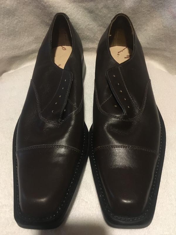 Туфли, размер 44 , длина по стельке 31,5. На фото не очень видно, но они темно-коричневого цвета.100% кожа