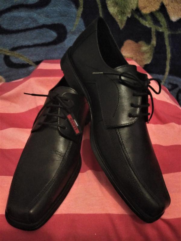 Шикарні класичні туфлі найвищої якості, виготовлені з добротної, гладкою і м'якої телячої шкіри. Підошва - броня, носок і задник посилені, строгий діловий стиль, вишукана модель. Довжина 29 см, носок злегка звужений, тому ідеально, все ж, на стопу 28, не широку. Пахнуть натуральною шкірою, неприємних запахів немає. Всім вдалих покупок. Арт. 0006