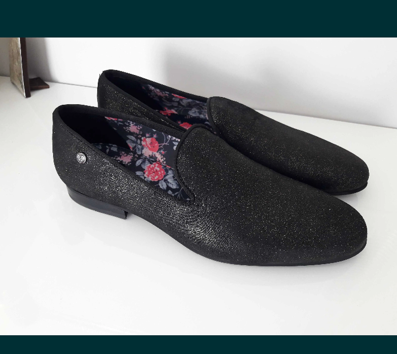 Нові! Туфлі Twisted Tailor чорні, з золотим глітером. дуже стильно виглядають з укороченими або завуженими штанами. На одному є потертість( в носці не замітна)На останньому фото .Віддаю дуже дешево!