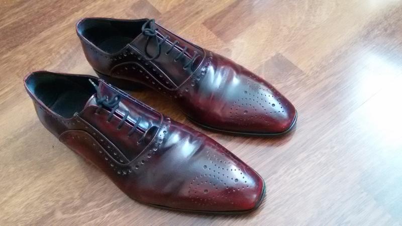 Чоловічі туфлі PASITO, виробництво Італія, класика, розмір 41 (довжина по устілці 27,5 см), колір гнила вишня, дуже легкі і м'які, легко чистяться ( хоч бананової шкіркою). Всі шкіра : верх, всередині, підошва (прошиті) підошва з гумовою вставкою.