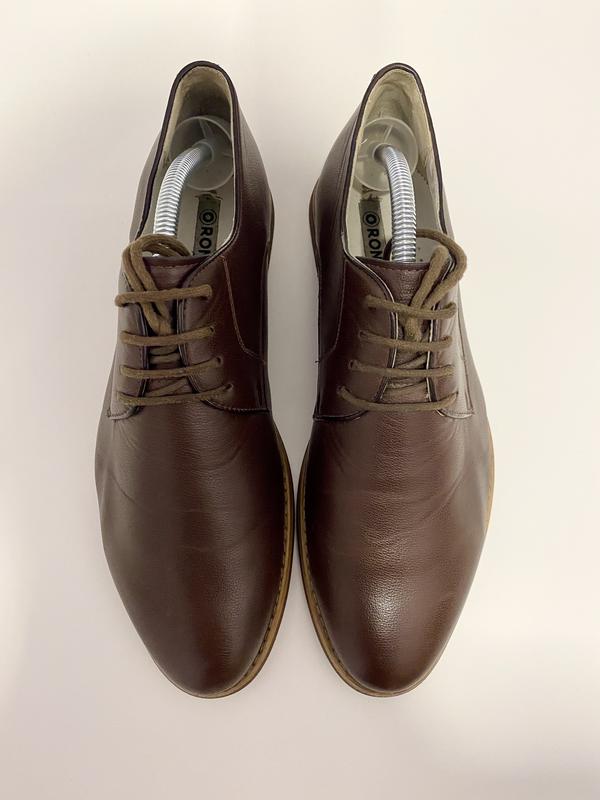 Класичні чоловічі туфлі дербі, коричневого кольору, з невисоким каблуком. Стан відмінний, розмір указаний як 41, але по факту йде на 42-42.5. Будь ласка, зверніть вашу увагу також на інші оголошення 🤝 За всіма питаннями звертайтесь, з радістю відповімо! 🙏🏻